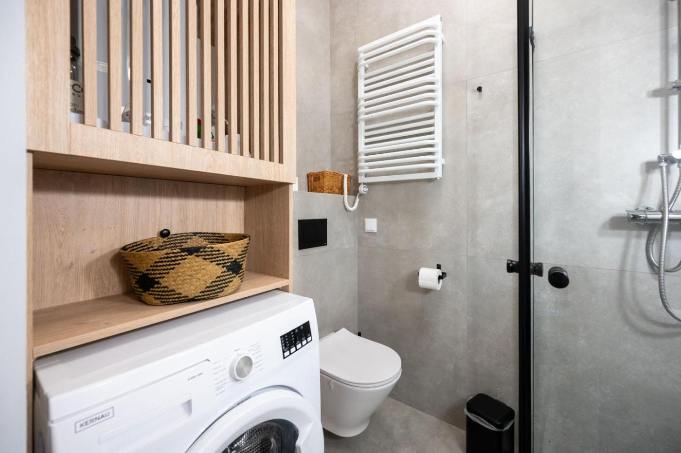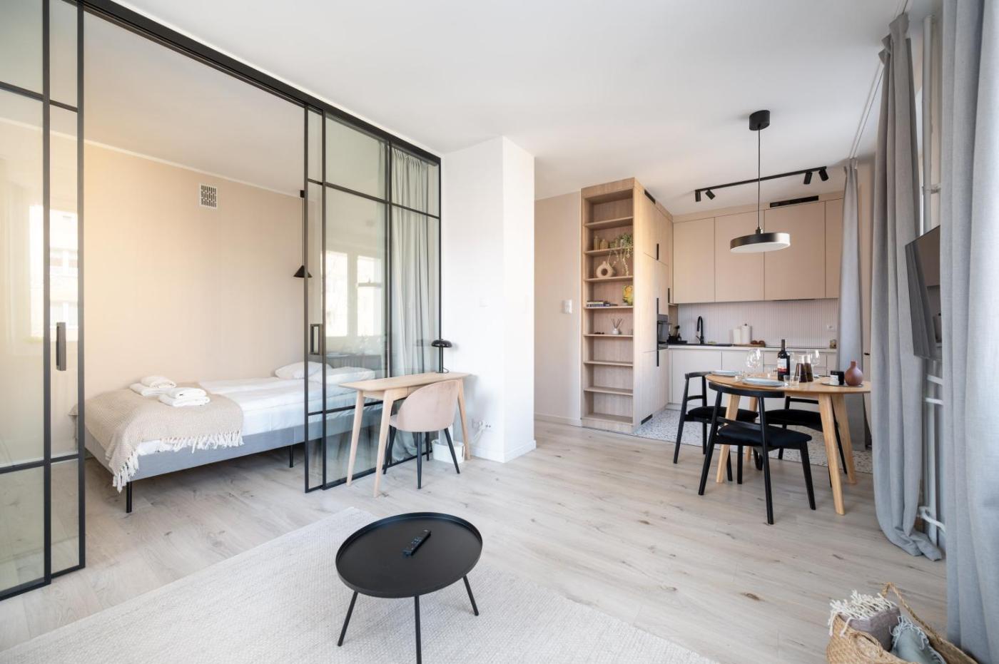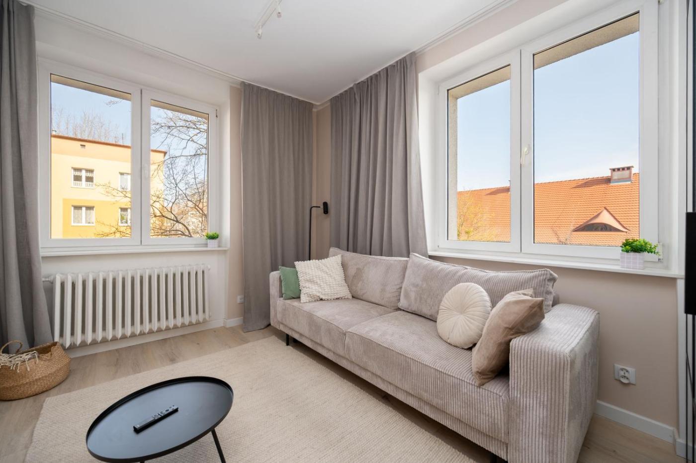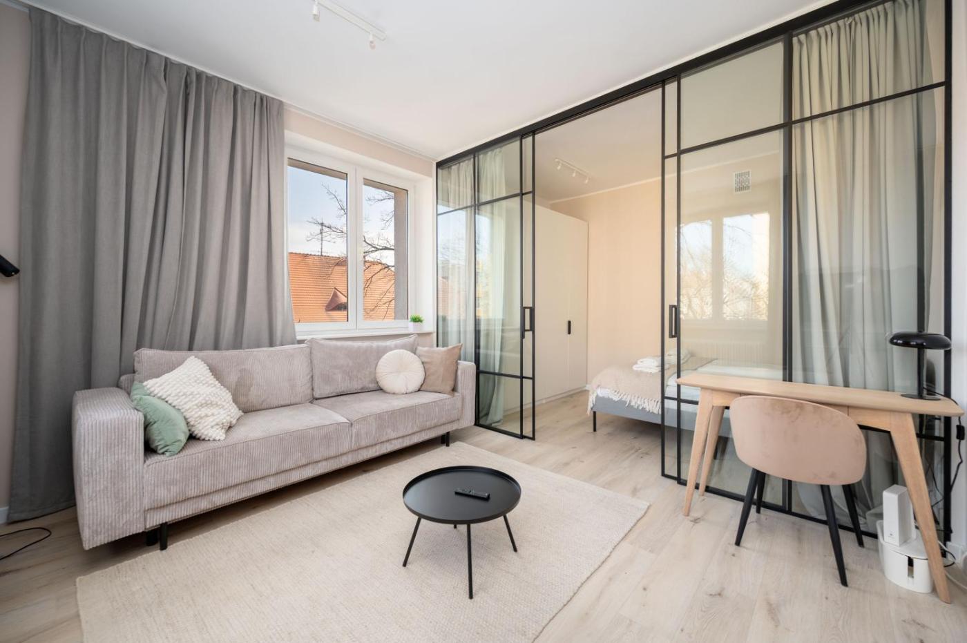 Apartament z 1 sypialnią. This apartment comprises 1 living room, 1 separate bedroom and 1 bathroom with a shower and a hairdryer. Meals can be prepared in the well-fitted kitchen, which comes with a stovetop, a refrigerator, a dishwasher and kitchenware. The apartment provides a flat-screen TV with streaming services, a washing machine, a coffee machine, a dining area as well as ancourtyard view. The unit offers 2 beds. Apartament - 4 osobowy. Powierzchnia pokoju ok.: 39 mkw.