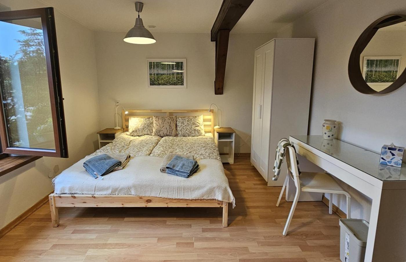 Duży pokój dwuosobowy. This double room has a desk, an outdoor dining area, garden views and a shared bathroom. The unit has 1 bed. Pokój Dwuosobowy - 2 osobowy. Powierzchnia pokoju ok.: 20 mkw.