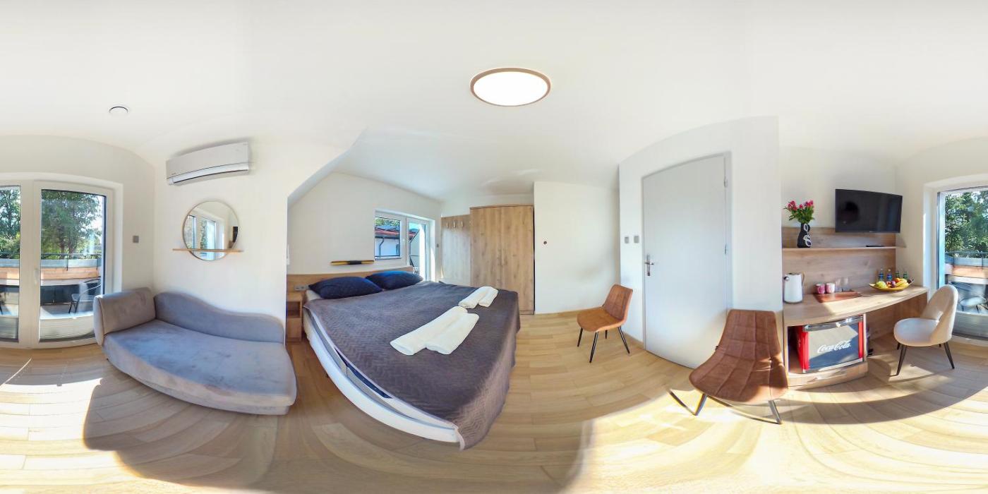 Apartament typu Junior Suite z tarasem. Featuring a private entrance, this air-conditioned suite comprises 1 living room, 1 separate bedroom and 1 bathroom with a shower. Boasting a terrace with garden views, this suite also provides a seating area and a flat-screen TV with cable channels. The unit offers 2 beds. Apartament typu Suite - 3 osobowy. Powierzchnia pokoju ok.: 30 mkw.
