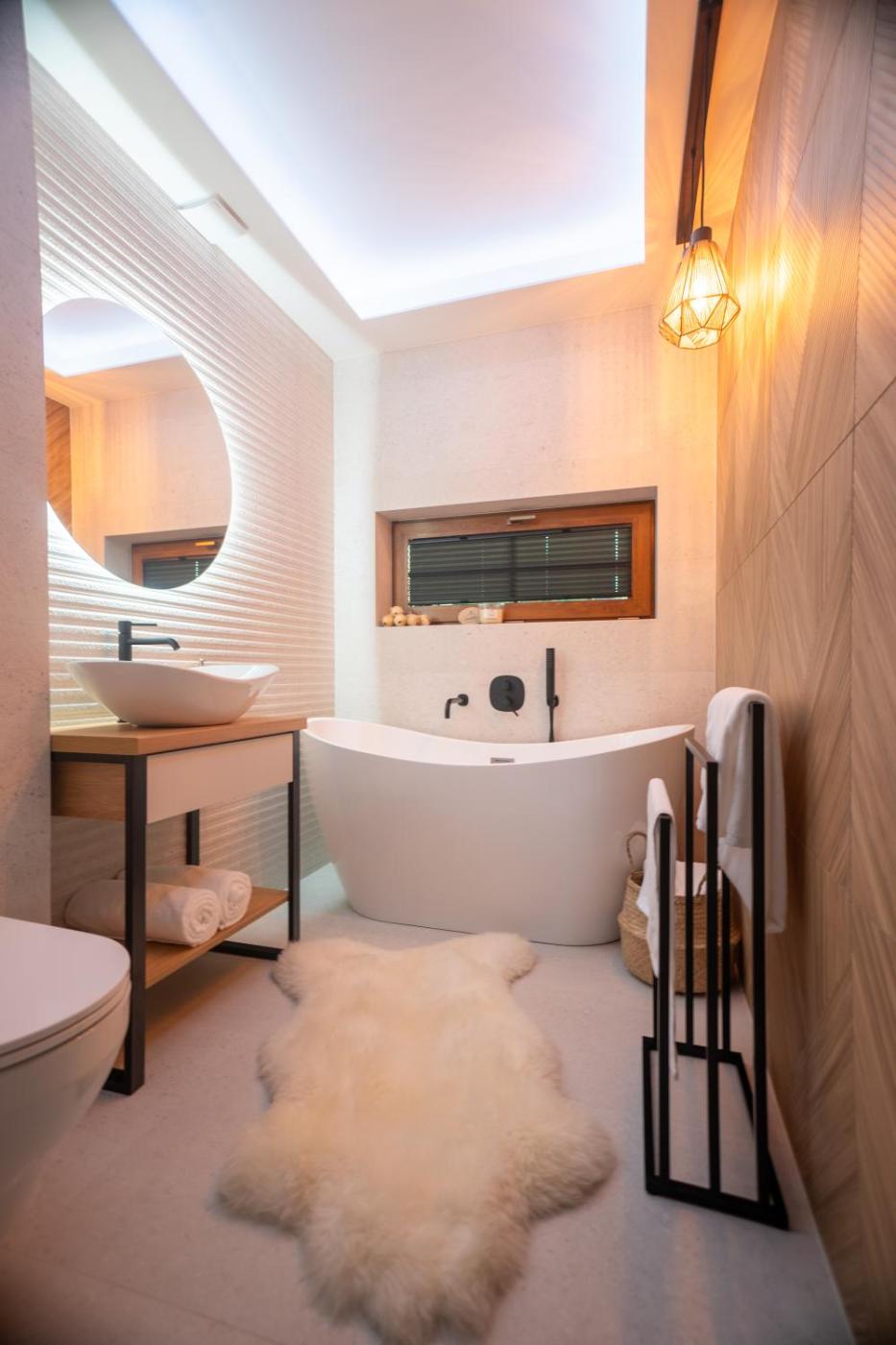 Domek z 3 sypialniami. This chalets standout features are the hot tub and fireplace. This spacious chalet includes 1 living room, 3 separate bedrooms and 2 bathrooms with a bath and a shower. In the well-equipped kitchen, guests will find a stovetop, a refrigerator, a dishwasher and kitchenware. Boasting a terrace with garden views, this chalet also offers a private entrance and a flat-screen TV. The unit has 4 beds. Domek - 8 osobowy. Powierzchnia pokoju ok.: 88 mkw.