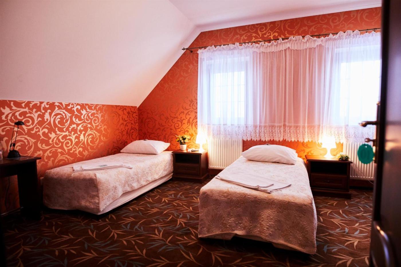 Pokój z 2 łóżkami pojedynczymi i prywatną łazienką. Offering free toiletries, this twin room includes a private bathroom with a shower. The twin room offers a wardrobe, a carpeted floor, heating, a flat-screen TV, as well as garden views. The unit has 2 beds. Pokój z 2 łóżkami pojedynczymi - 2 osobowy. Powierzchnia pokoju ok.: 14 mkw. ;